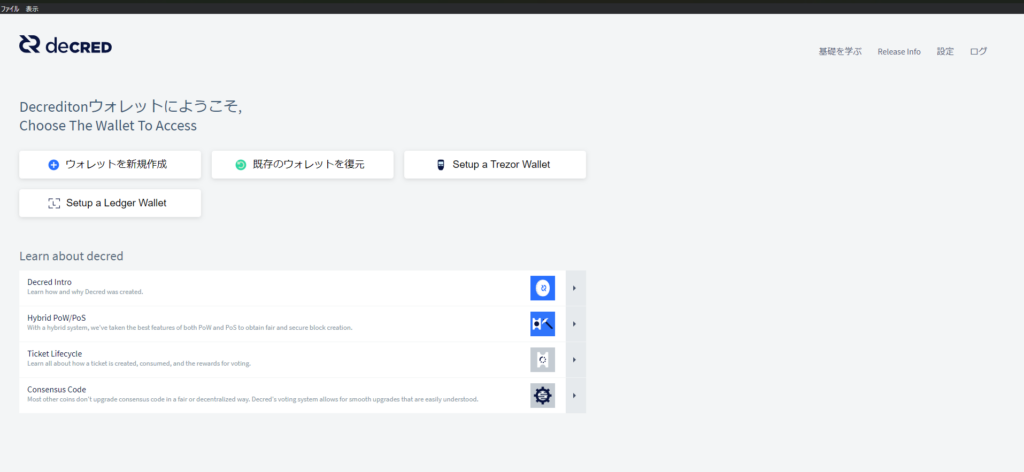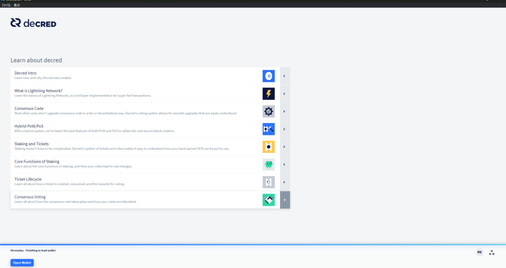 Decreditonはフルノード運用からライトニングネットワーク、ステーキング、ガバナンス機能に至るまでDecredに関する全機能を備えた公式実装のウォレットです。