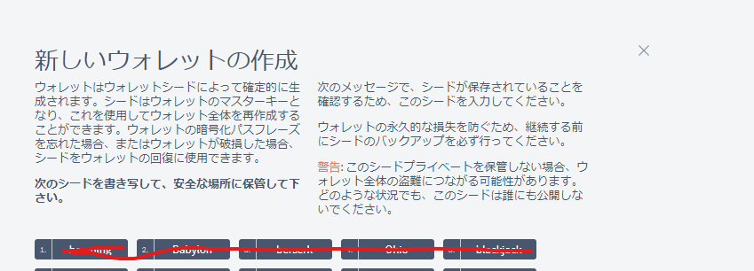 このシードフレーズが漏れると、一瞬でウォレットから全ての残高を抜かれてしまいます。