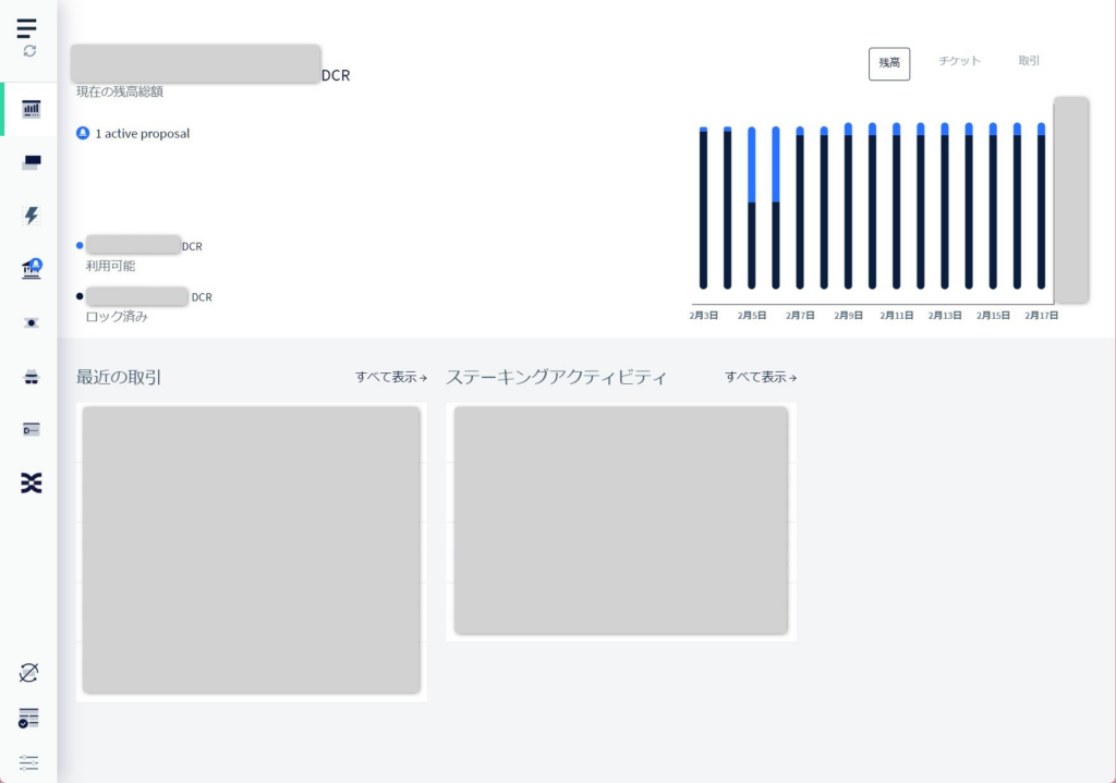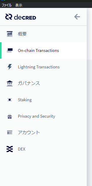 保有中のDCR残高や取引履歴などを確認できます。 - On-chain Transations(オンチェーン取引):