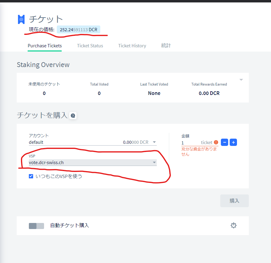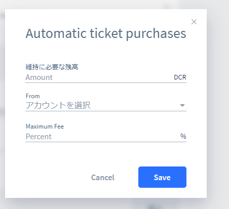 たとえば、100DCRと記載しておくと常に自分のウォレットには100DCRが残り、ほかのDCRはステーキングに自動的に充てられることとなります。(もし残高で買えるだけチケットを買いたい場合は『0』を指定します)