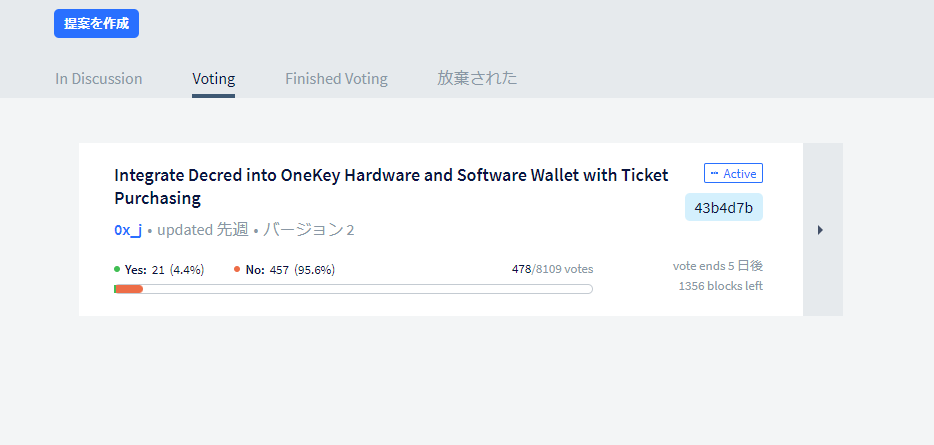 左から議論中(In Discussion)、投票中(Voting)、Finished Voting(投票完了)、放棄された(没案)で確認が出来ます。
