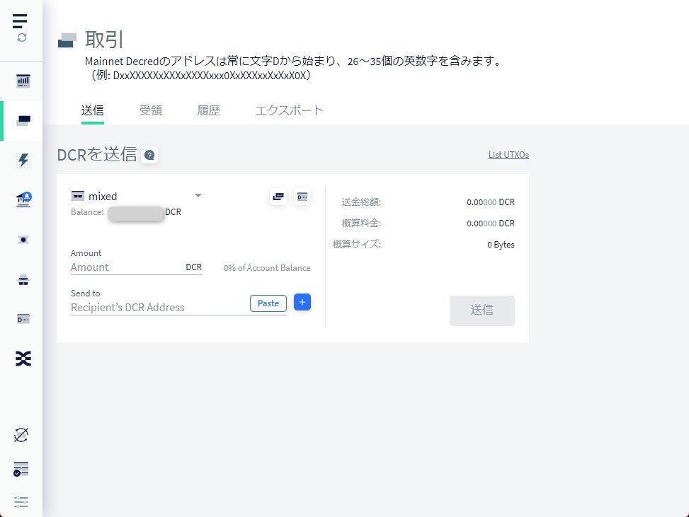 Requested Amount(リクエスト数量): 相手から受け取る数量を指定したい場合に利用します。取引所からの出金等の際は使いません。
