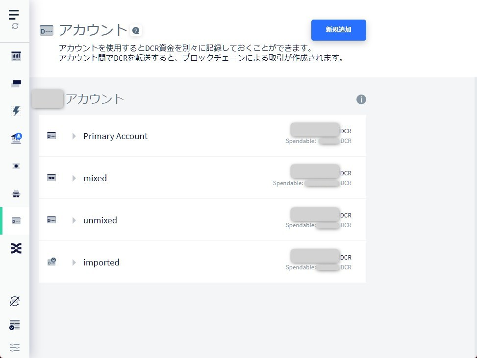 誰かに送金するときに自分をコインの残高を知られたくないときなどに利用します。こちらも後日追記予定です。 - アカウント: