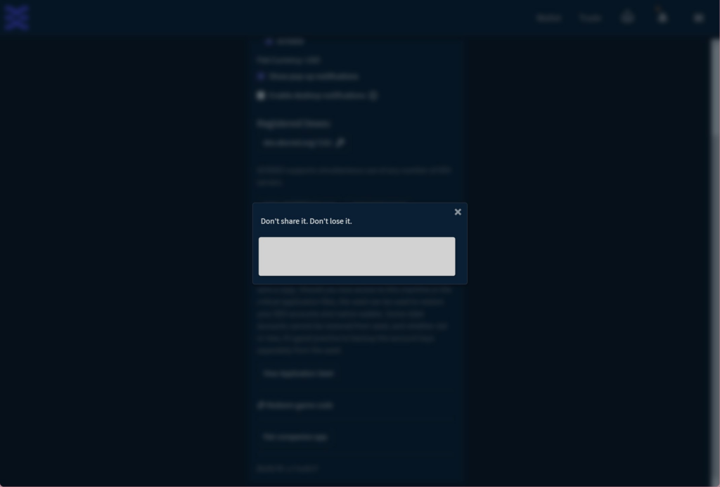 セットアップができたら、右上のメニューから『Settings』→『View Application Seed』で確認出来ます。必ずバックアップしておきましょう。